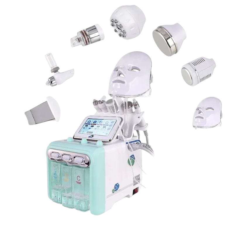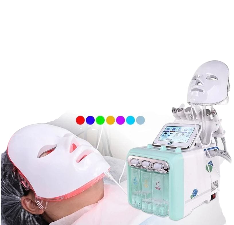 Es una máquina profesional de cuidado de la piel, utilizada para realizar tratamientos estéticos no invasivos en el rostro. Combina diversas tecnologías avanzadas, como inyección de oxígeno, radiofrecuencia, microcorriente y atomización de alta frecuencia, para rejuvenecer y mejorar la apariencia de la piel. También incluye una máscara LED con 7 modos de luz para promover la regeneración celular y mejorar la salud general de la piel.