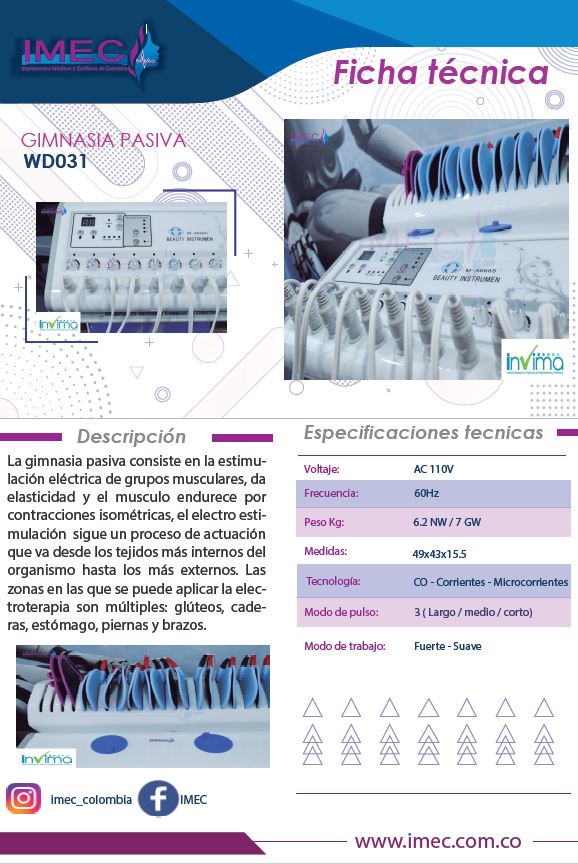 Es un dispositivo que utiliza impulsos eléctricos para provocar contracciones musculares. Se emplea en estética para tonificar y endurecer los músculos, así como en terapia física para rehabilitar lesiones y aliviar el dolor. Este equipo permite la gimnasia pasiva, lo que significa que se pueden ejercitar músculos sin realizar actividad física activa, ideal para quienes no pueden hacer ejercicio. Su uso es seguro, ya que trabaja de manera dirigida en grupos musculares específicos, minimizando el riesgo de lesiones.