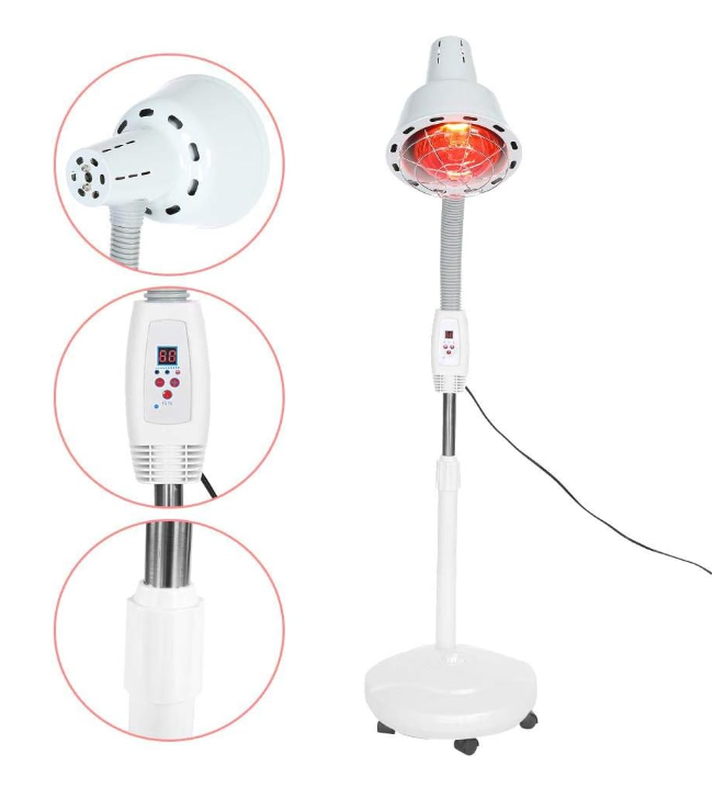 Este equipo de estética facial y corporal es el modelo económico de la lámpara infrarroja, aparte de eso como su nombre lo dice integra unas rodachinas para facilitar su manejo en una estética o lugar de trabajo